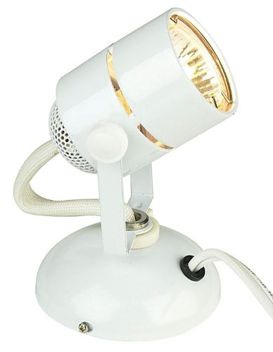 This mini spotlight is useful in any home. It can be used to light plants, artwork or any favorite object. Can be mounted on a wall or sit on the floor. Automatic shut-off feature when tipped over. Includes plug-in transformer.
